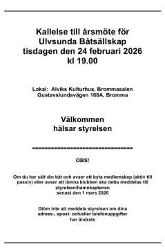 - UBS årsmöte, 24 februari kl 19.00, Alviks Kulturhus